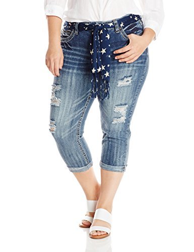 WallFlower Junior's Plus-Size Destructed Capri Jean with Tie Belt